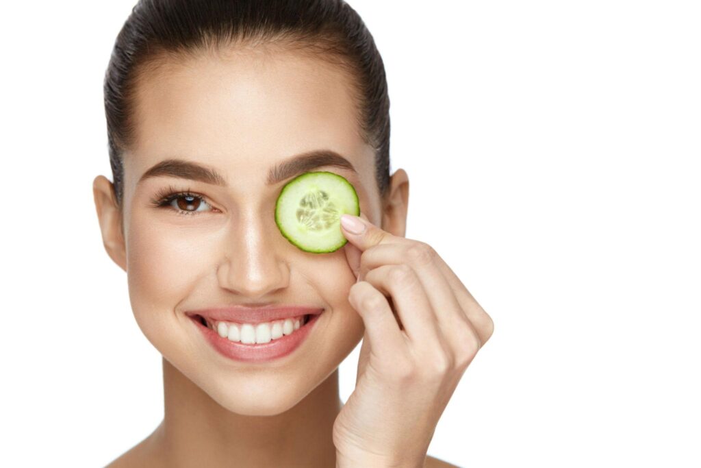 Take care of your under-eye area using eye cream or aloe vera gel. Maintain a healthy diet with fruits and vegetables to support glowing skin from within.